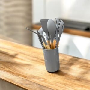 Set de utensilios (12 piezas) 11 utensilios de silicona con mango de bambú + recipiente contenedor