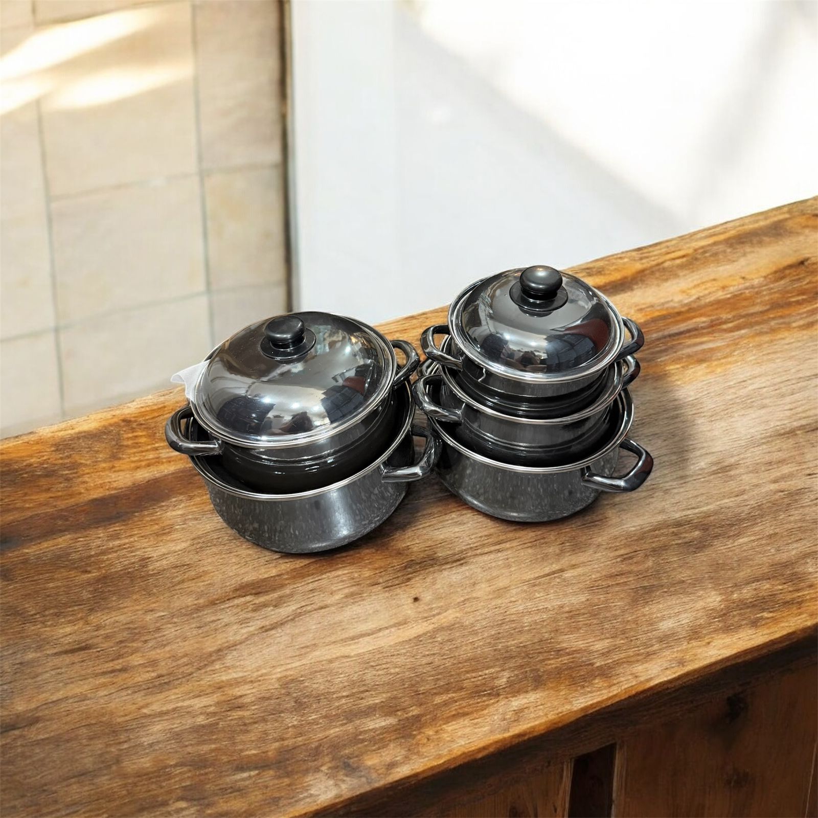 Cacerola enlozada por 5 piezas (5 cacerolas de 18/20/22/24/26 cm con tapa)