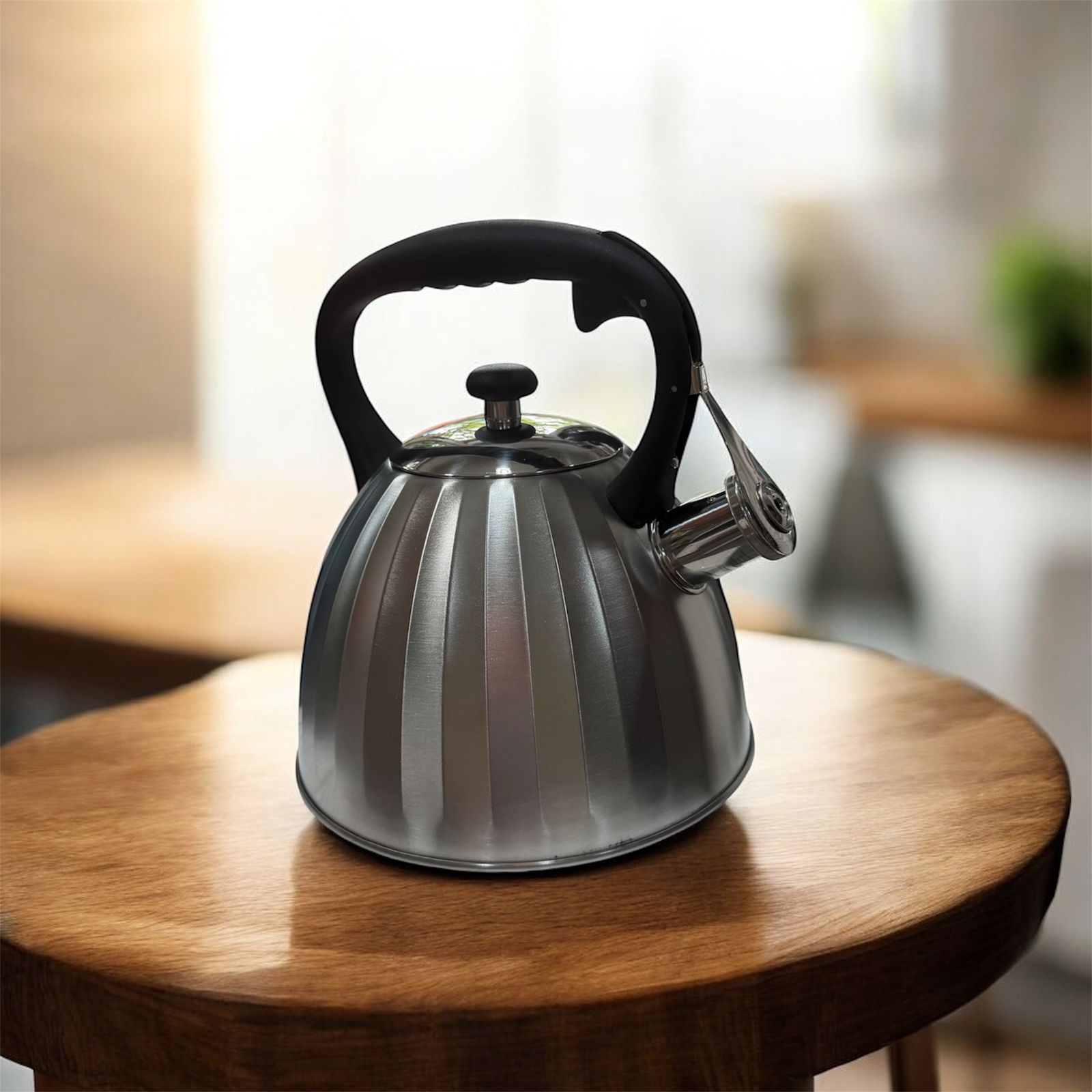 Pava de acero silbadora, facetada y satinada de 2,7 litros (CALIDAD PREMIUM)