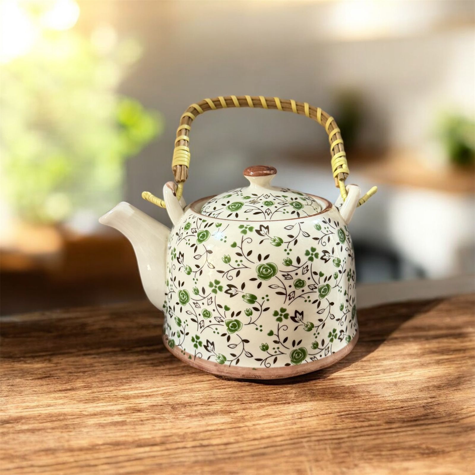Tetera cerámica ( 900 cc) con infusor de acero inoxidable y mango de bambú